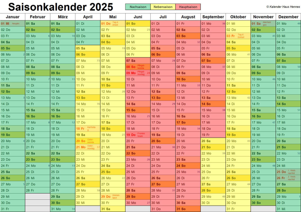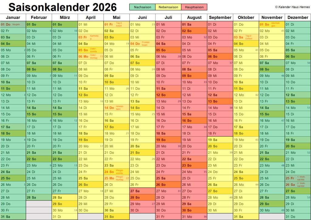 ab 2026 hat das Haus Hennes eine neue Verwaltung, wodurch sich ein paar Änderungen ergeben. Bisher war in der Hauptsaison sowie in den Weihnachts-, Herbst- und Osterferien der Bettenwechsel immer am Samstag, ab 2026 erfolgt der Bettenwechsel freitags. Weiterhin erhöhen sich die Kosten für die Endreinigung auf 89,25 € und die Kosten für das Wäschepaket auf 23,80 €.